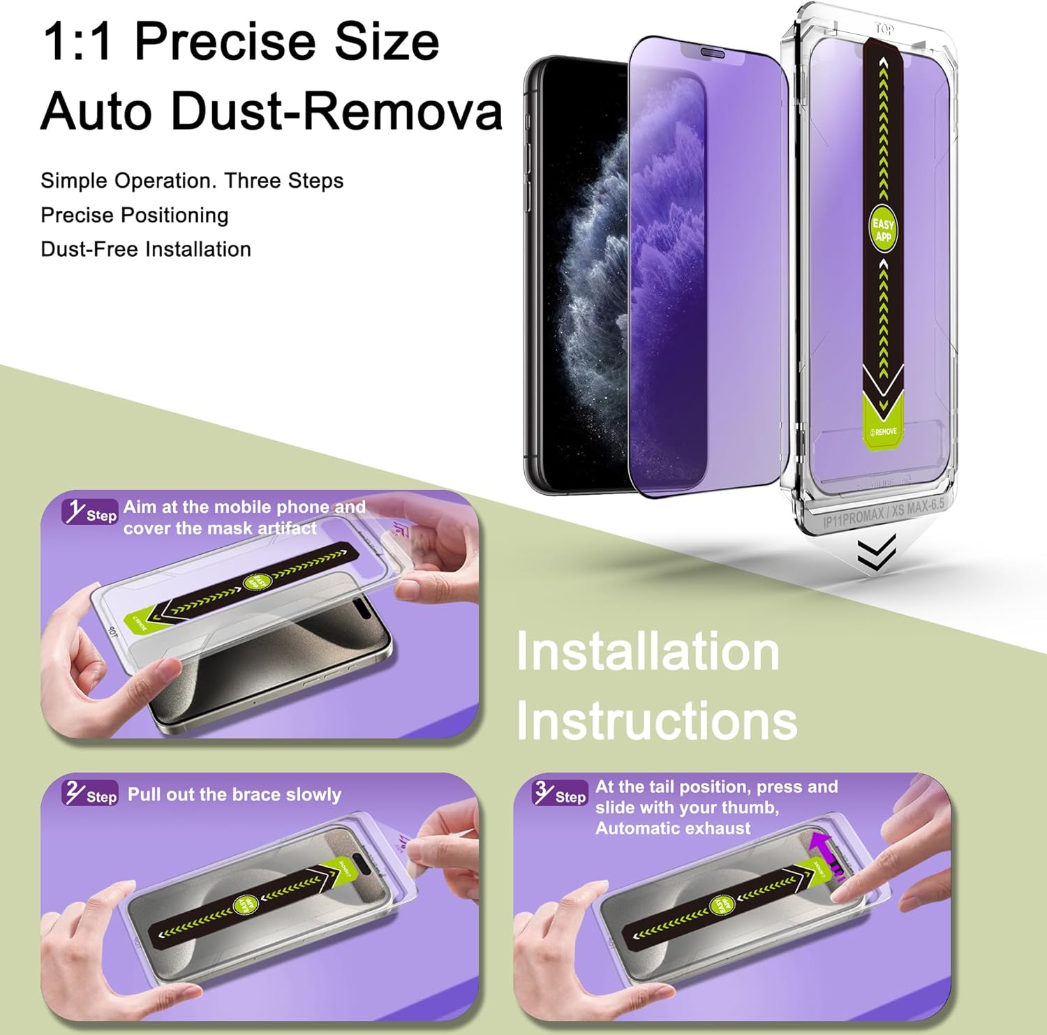 - Auto Dust Removal & Easy Installation: The SY SHANGYAN Anti Blue Light Matte Screen Protector for iPhone 11 Pro Max/XS Max features advanced auto dust removal and self-aligning technology for a flawless,bubble-free install every time.Just place the frame,pull the tab,and press to push out any air bubbles.Installation is quick,easy,and hassle-free.For best results,watch our step-by-step installation video before applying